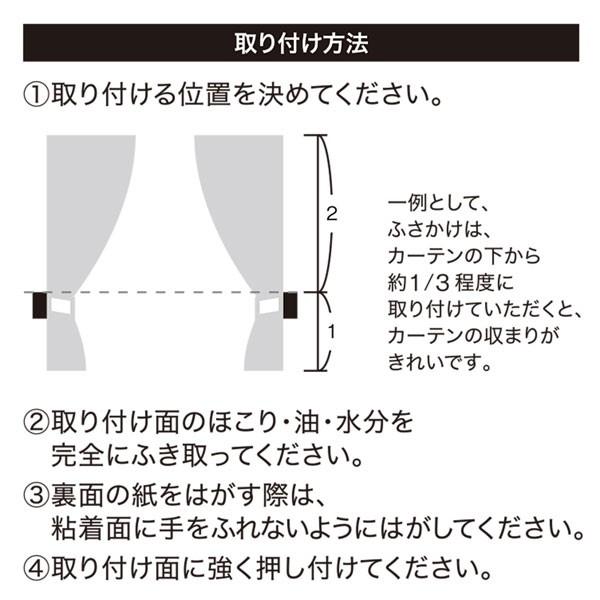 オンライン通販のAmazon公式サイトなら、3M コマンド フック カーテンふさかけ用 アイボリー 2個 CM19CINを ホーム&キッチンストアで、いつでもお安く。当日お急ぎ便対象商品は、当日お届け可能です。アマゾン配送商品は、通常送料無料。ニトムズ はがせるフック カーテンふさかけ 白 22mm×mm×75mm 徳用6個入り H31 5つ星のうち41 54 ¥1,036 ¥1,036 (¥173/個) 10ポイント (1%) 明日, 8月16日, 800 10までにお届け こちらからもご購入いただけます ¥729 (10点の新品) 房かけの取付位置 です。 窓の大きさやカーテンの丈の関係で、 ケースバイケースの判断 をしながら、 プロは房かけの位置を決めています。 だいたいの目安としては 全体の高さの、 1/3位置にタッセルがくるように 、 房掛け位置を決めます。